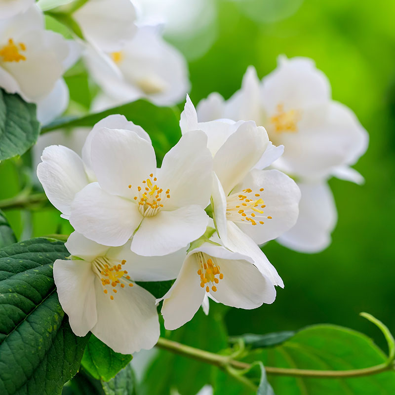 Doftschersminen, Philadelphus coronarius är ett oslagbart val för trädgården. Med sin praktfulla blomning, fantastiska doft och eleganta växtsätt blir den snabbt en av trädgårdens mest framträdande prydnader. Doftschersminen bjuder på en oförglömlig vår- och försommarscen när den täcks av vita, gräddvita blommor i överflöd. Blommorna, som sitter i klasar, sprider en intensiv och ljuvlig doft som fyller luften och lockar både fjärilar och bin.