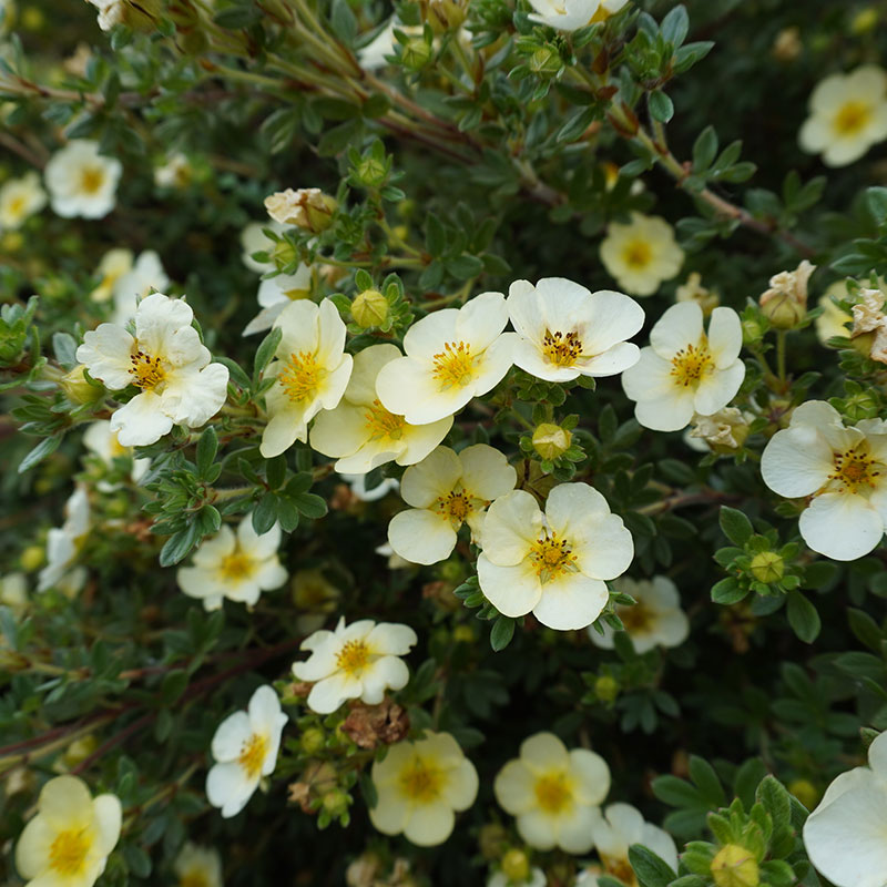 Som häck växer 'Sandved' tätt och buskigt, vilket gör den till ett utmärkt val för att skapa en snygg, låg avgränsning. Den har ett kompakt växtsätt, och de små, mörkgröna bladen bildar en fin bakgrund för de ljusa gula blommorna som blommar rikligt från juni till september. Häcken ger trädgården ett soligt och livfullt uttryck och är perfekt för inramning av gångar, rabatter och uteplatser. Den passar också bra i massplanteringar, där den täcker marken effektivt och vackert.