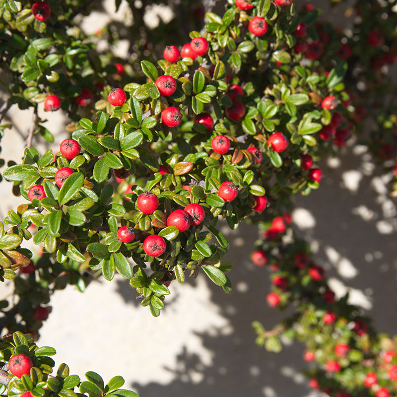Vetenskapligt namn: Cotoneaster × suecicus 'Skogholm'