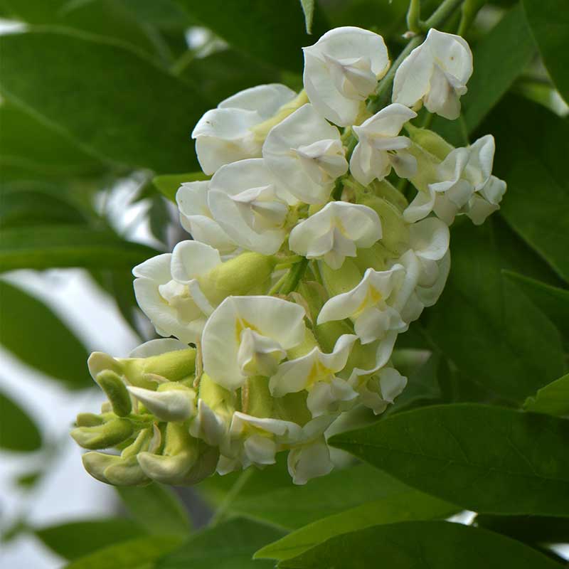 Om du vill ha den klassiska ""blåregns-looken"" men har en vit eller romantisk färgskala i trädgården är 'Nivea' oslagbar. De korta, knubbiga klasarna ser nästan ut som små vita moln som hänger ner från grenarna. Den är också idealisk för den som inte vill lägga timmar på avancerad beskärning varje år.