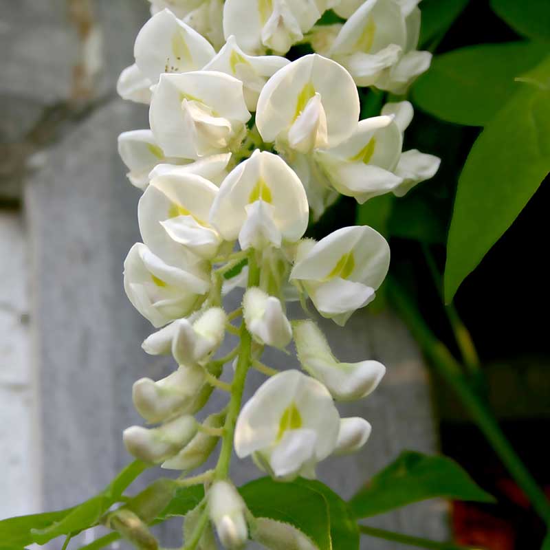Om du vill ha ett vitt blåregn men bor i en zon där de asiatiska sorterna fryser bort, eller om du helt enkelt vill ha en planta som är mer lättskött och pålitlig, är detta valet för dig. Den kombinerar de långa klasarna från de asiatiska sorterna med den amerikanska härdigheten.
