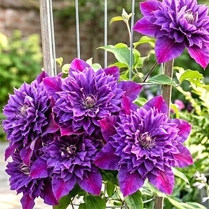 Klematis 'Birthday Girl' är en prisbelönad storblommig klematis som verkligen drar blickarna till sig med sin intensiva färg. Det är en kompakt och otroligt rikblommande sort som får stora, sammetslena blommor i en djup purpurlila till nästan magentaröd nyans med kontrasterande gula ståndare.