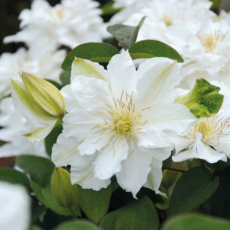 Klematis 'Bride's Bouquet' är en dröm av dubbla vita blommor