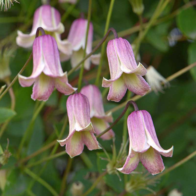 Klematis 'Fay' är en otroligt rikblommande och charmig klematis med små, klockformade blommor som nickar elegant.