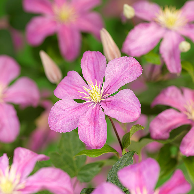 Klematis ‘Comtesse de Bouchaud’ 5-pack, rosa juni–sep höjd 2–3m sol–skugga lätt