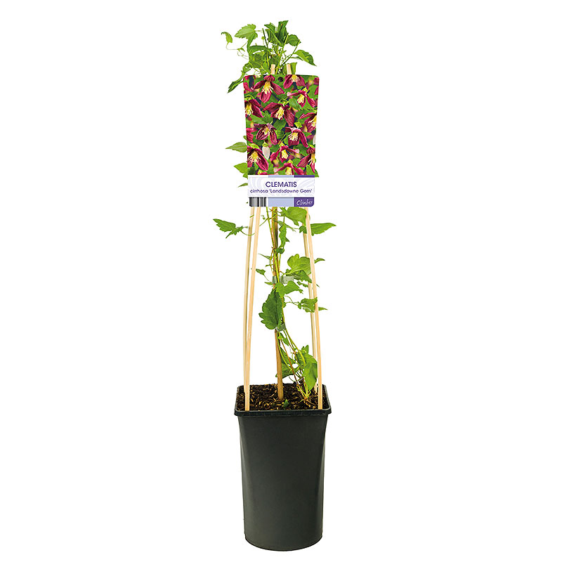 Klematis 'Landsdowne Gem' är en vintergrön och vinterblommande clematis. Sortens ursprung från södra Europa. Blommar med rödviolett/rosa blommor från november till februari med citrusliknade doft. Kan odlas i kruka. Måste skyddas från starka vindar.
