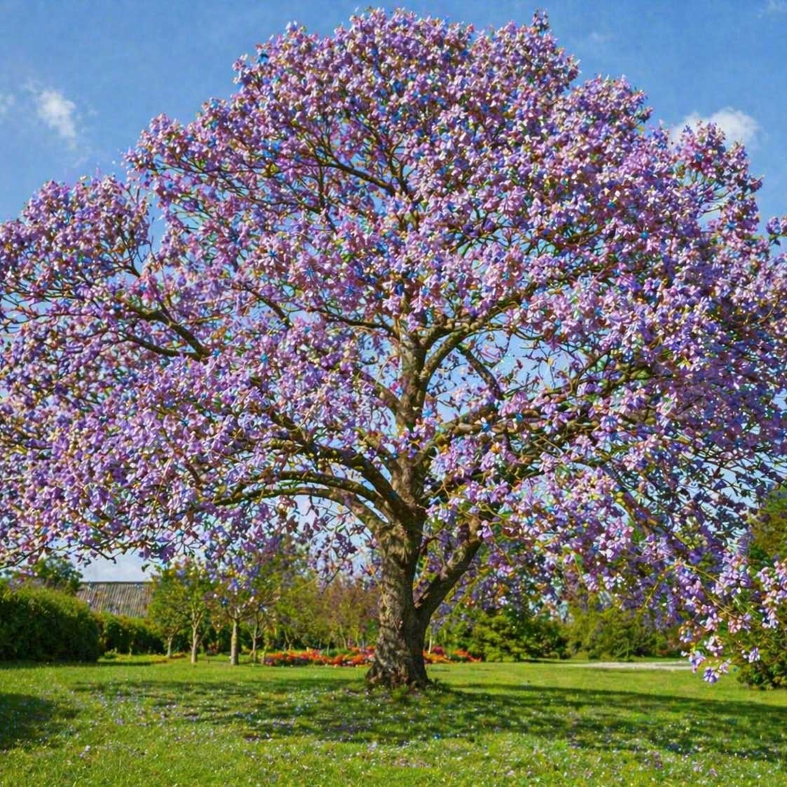 Det finns inget annat träd i våra breddgrader som växer så snabbt och ser så utomnordiskt ut. Detta är det ultimata valet för att skapa höjd och karaktär på kort tid. Om man lyckas pricka in en mild vår och får se de lila blommorna mot en blå himmel, då har man trädgårdens absoluta höjdpunkt!