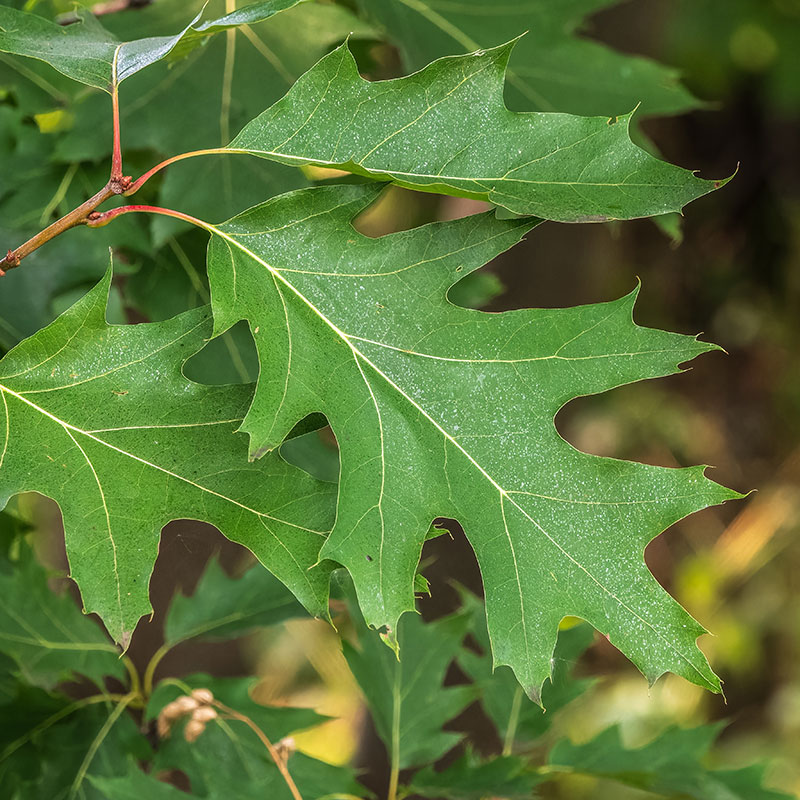 Quercus rubra E är en noggrant utvald E-planta av nordamerikansk rödek, anpassad för svenska förhållanden. Trädet växer snabbt och kraftfullt, med en bred och luftig krona som ger ett majestätiskt intryck i parker, alléer och större landskap. Sluthöjden är 20–25 meter och bredden 12–18 meter, vilket gör den till ett imponerande inslag i miljön. Den trivs bäst i näringsrik, väldränerad jord och soliga lägen men klarar även halvskugga. Bladverket är stort och friskt grönt under sommaren, men det är hösten som gör rödeken unik då bladen glöder i intensiva nyanser av rött, orange och gult. Barken är ljusgrå och slät högt upp på stammen, vilket ger ett elegant utseende. Rödeken blommar i maj–juni, samtidigt som bladen slår ut. Blommorna är små, gulgröna och oansenliga, men viktiga för pollinering. Efter blomningen utvecklas ekollon, precis som hos vår vanliga ek, men de är något mindre och mer avlånga. Ekollonen är en värdefull födokälla för fåglar och smådjur, vilket gör trädet ekologiskt betydelsefullt. Rödeken liknar vår inhemska ek i grundformen, men har smalare blad med spetsiga flikar och en mer öppen kronstruktur. Dess snabbare tillväxt och spektakulära höstfärger gör den till ett populärt val för landskapsplantering. Som E-planta är Quercus rubra E utvald för jämn kvalitet, god tillväxt och hög motståndskraft.