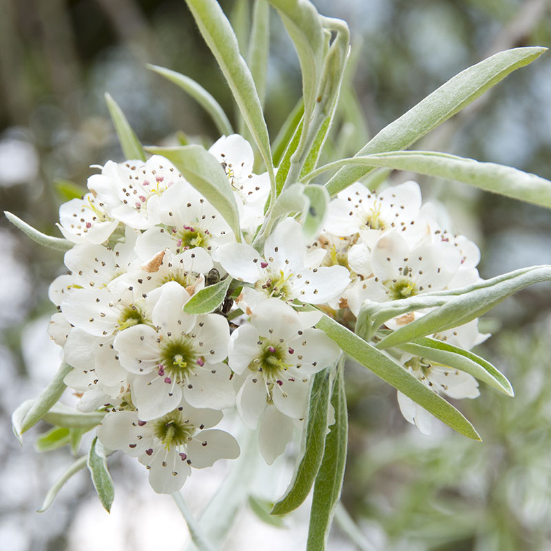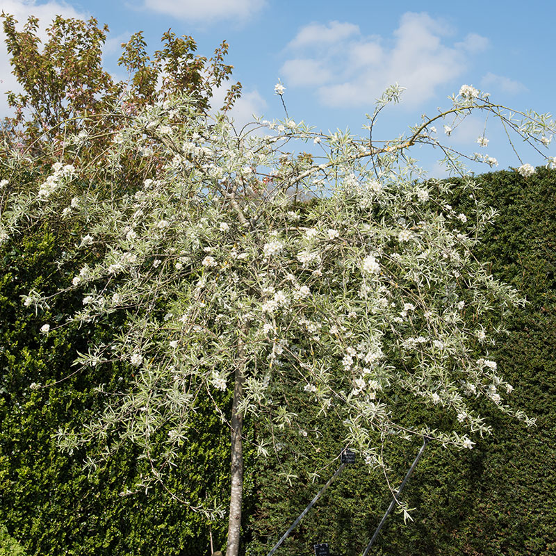 Nordens frodiga olivträd, även kallad. Dess silvriga och frodiga långsmala bladverk gör att den påminner om olivträdets. Silverpäronet däremot är mycket härdigare och bildar en hängande yvig krona.