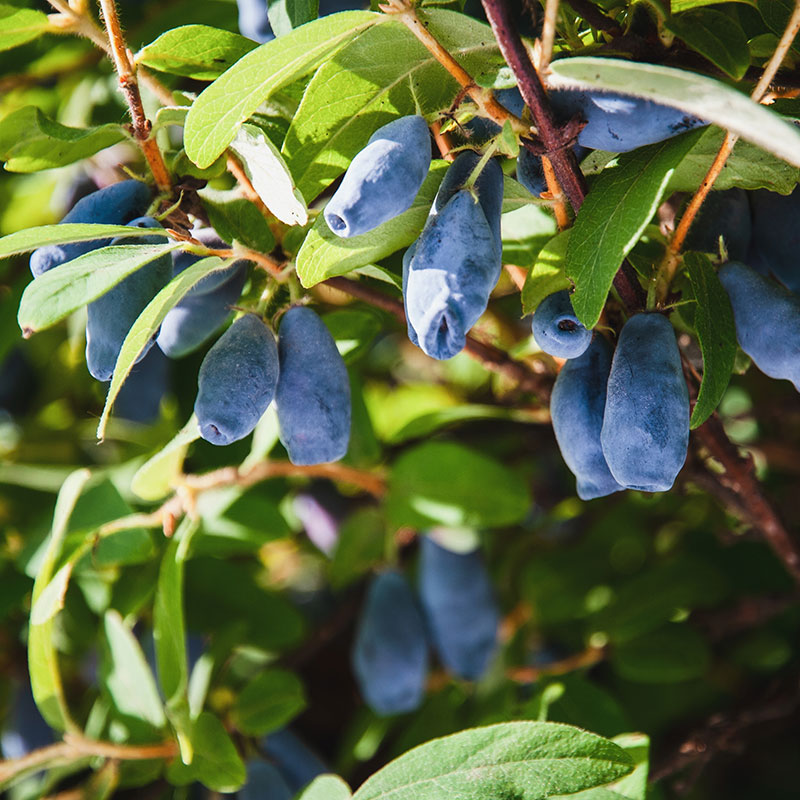 Blåbärstry ‘Balalaika’, även kallad honungsbär, är en spännande och lättodlad bärbuske som kombinerar dekorativ grönska med riklig skörd. Den har ett kompakt växtsätt och ger stora, ca 3 cm långa, mörkblå bär med söt och frisk smak som påminner om blåbär men med en egen arom. Bären är rika på vitaminer och antioxidanter och mognar tidigt – ofta redan i maj–juni – vilket gör den till en av de första bärsorterna att skörda på säsongen.