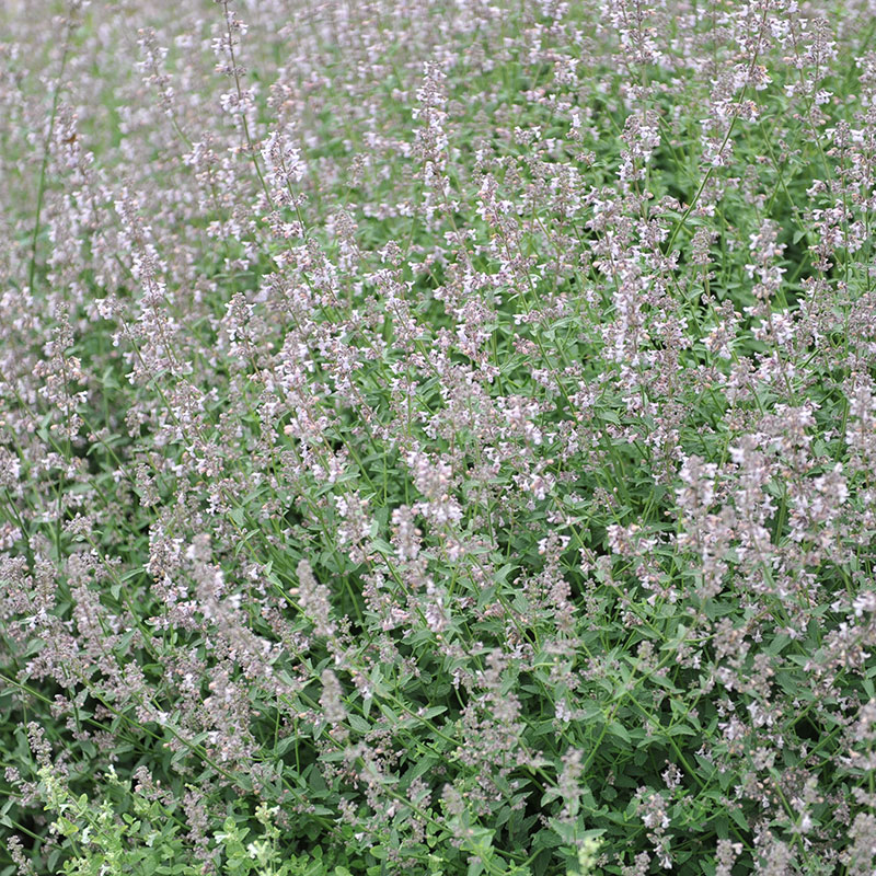 Nepeta faassenii 'Amelia' är en elegant och romantisk kantnepeta som skiljer sig från de vanliga blå sorterna genom sina vackra ljusrosa blomspiror. Den blommar länge, ofta från tidig sommar ända in på hösten och är en av trädgårdens mest lättskötta och pålitliga perenner. Med sitt mjuka växtsätt och sin förmåga att locka bin och fjärilar skapar 'Amelia' både liv och lätthet i rabatten. Den lämpar sig perfekt i soliga perennrabatter, som kantväxt, i stenpartier och i större grupper, där den snabbt bildar en tät och frodig matta av grågröna, aromatiska blad. 'Amelia' är mycket torktålig, trivs i mager jord. Ett naturligt val för den som vill ha en vacker, problemfri och långblommande perenn.