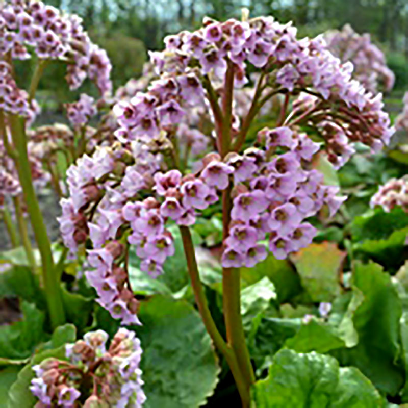 Hjärtbergenia 'Möja' 3-pack, mörkgrön bladperenn ljusrosa blom 50 cm sol skugga väldränerat