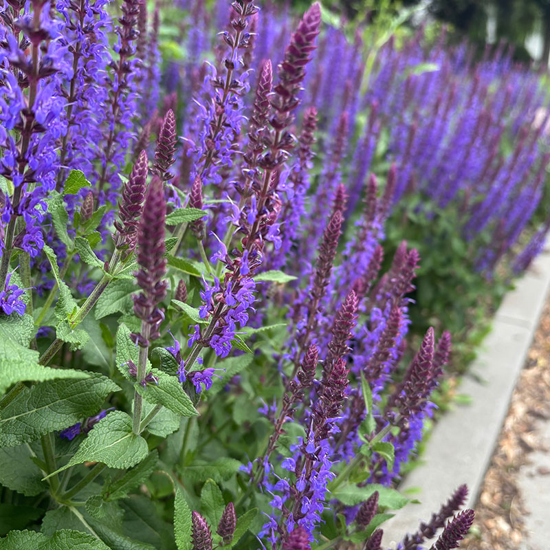 • Salvia nemorosa ’Caramia’ – kompakt, mörka stjälkar och rikblommande