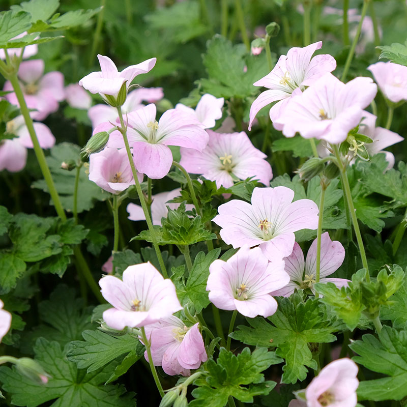 Geranium DREAMLAND ('Bremdream'PBR) är en exklusiv näva som kombinerar romantisk charm med praktisk funktion. Den blommar rikligt från juni till september med stora, mjukt rosa blommor med mörkare ådring, vilket ger ett elegant och naturligt uttryck i rabatten. Växten har ett kompakt, buskigt växtsätt och är perfekt för både soliga och halvskuggiga lägen. Dess långa blomningstid gör den till en favorit för moderna och klassiska trädgårdar.