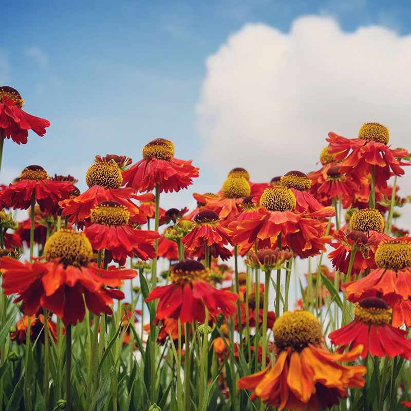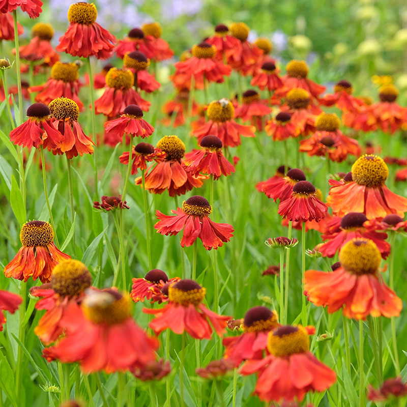 Helenium 'Moerheim Beauty' är en kraftfull och färgstark perenn som lyser upp sensommarträdgården med sina varma, kopparröda till bronsglödande blommor och gyllene mitt. Sorten är uppskattad för sin blomningstid, från juli till september, precis när trädgården behöver det som mest och för sina stabila, upprätta stjälkar som gör den till en pålitlig blickfångare i rabatten. 'Moerheim Beauty' trivs i soliga lägen och i näringsrik, fuktighetshållande jord, där den utvecklas till en buskig och frodig planta som lockar mängder av bin, humlor och fjärilar. Den är lika effektfull i perennarabatten som i naturnära planteringar och skapar en varm, livfull stämning tillsammans med prydnadsgräs, röllikor och solhattar. Detta är en klassisk och mycket odlingsvärd trädgårdssolbrud, en perenn som levererar färgprakt, struktur och biologisk mångfald år efter år.