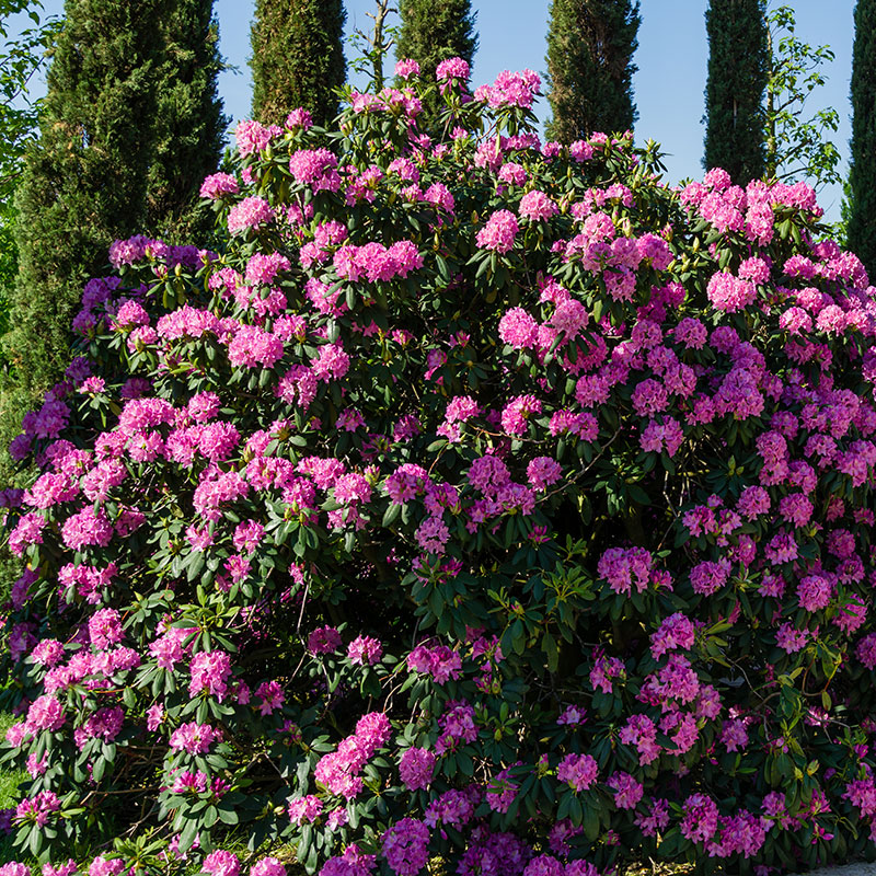 En imponerande och robust sort med rikligt vackra, lilarosa blommor som samlas i stora, rundade blomklasar. De klockformade blommorna har subtila vågiga kanter och skapar en fantastisk färgprakt under försommaren. Blommans rosa toner blandas harmoniskt med de mörkgröna, vintergröna bladen som ger busken ett frodigt utseende året runt. Denna sort kan bli upp till 3 meter hög och lika bred, vilket gör den perfekt för större trädgårdar eller som en iögonfallande häckväxt. Växten utvecklas med tiden till en flerstammig buske med snirklig och tät förgrening. Rhododendron Roseum Elegans är känd för sin tålighet och trivs bra i halvskugga till soliga lägen, helst i sur, väldränerad jord. Det är en pålitlig sort som klarar kalla vintrar och ger en långvarig, praktfull blomning.