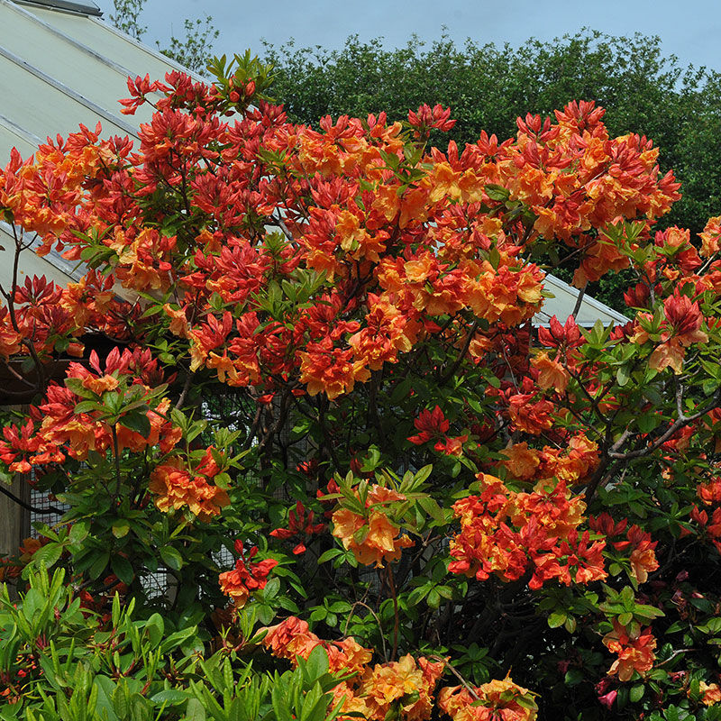 Detta är en särskilt vacker sort av rhododendron, känd för sina stora bollformade grupper av blommor. Blommorna är mörkt orange, trumpetformade med eleganta pastiller och ståndare som pryder busken under våren. Det är en vacker lövfällande buske med mörkgröna och läderartade blad som på hösten skiftar över i underbara höstliga färgsprakande nyanser. Bör planteras i halvskuggigt läge med skydd från starka vindar och alltför mycket sol. Jorden bör vara sur, väldränerad, näringsrik och gärna mullrik. Busken blir ca 1,5 meter hög och trivs bra tillsammans med andra kalkskyende plantor.