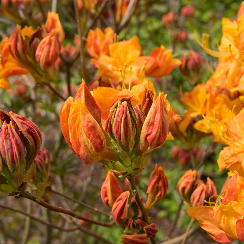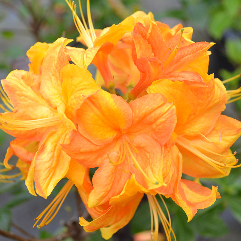 Detta är en fantastisk trädgårdsväxt som är särskilt uppskattad för sina lysande orangegula blommor med graciösa ståndare och pastiller som blommar i maj-juni. De glänsande, mörkgröna bladen ger en fin kontrast till de livliga blommorna. Mot hösten skiftar bladen färg till kopparröd för att seden få en bronsfärgad nyans. Den är lövfällande, härdig, robust och lättskött, ett utmärkt val för både små och stora trädgårdar. Busken blir ca 1 – 1,5 meter och föredrar ett halvskuggigt läge, skyddat från den starkaste eftermiddagssolen. Jorden bör vara väldränerad och sur.