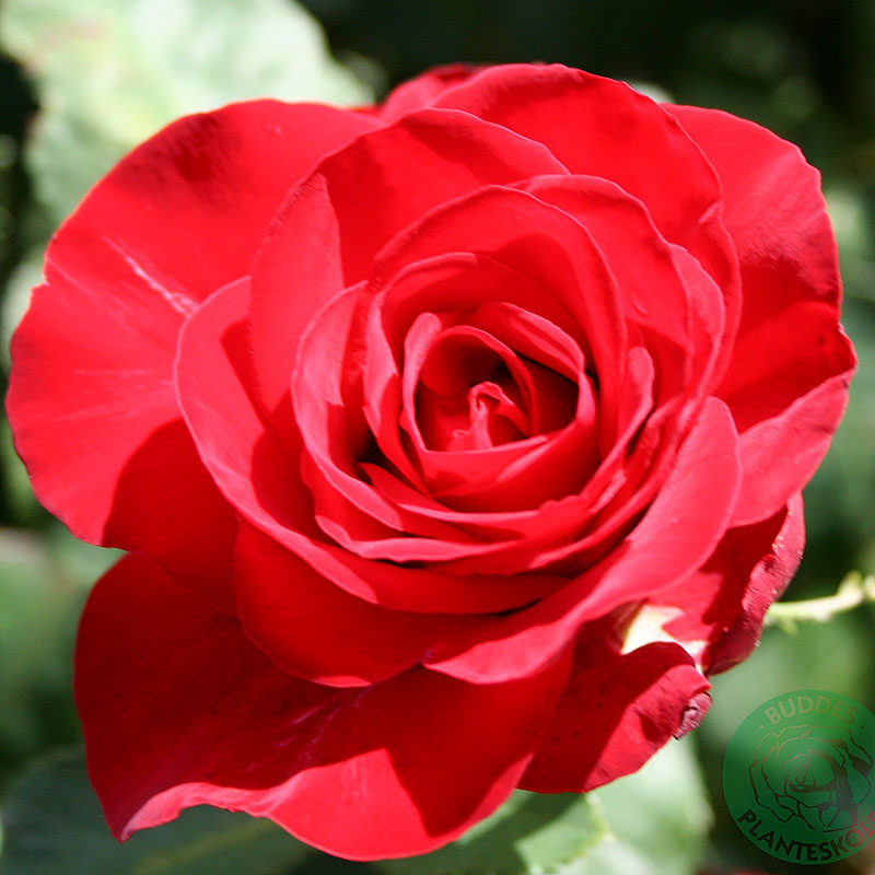 Storblommig rabattros 'Courage' med buskigt växtsätt. Ca 60 till 100 cm hög. Färgen på bladen är mörkgrönt, matt. Blommorna är stora, fyllda, varmt mörkröda med god doft. Blommar juni-oktober. Beskär på våren.