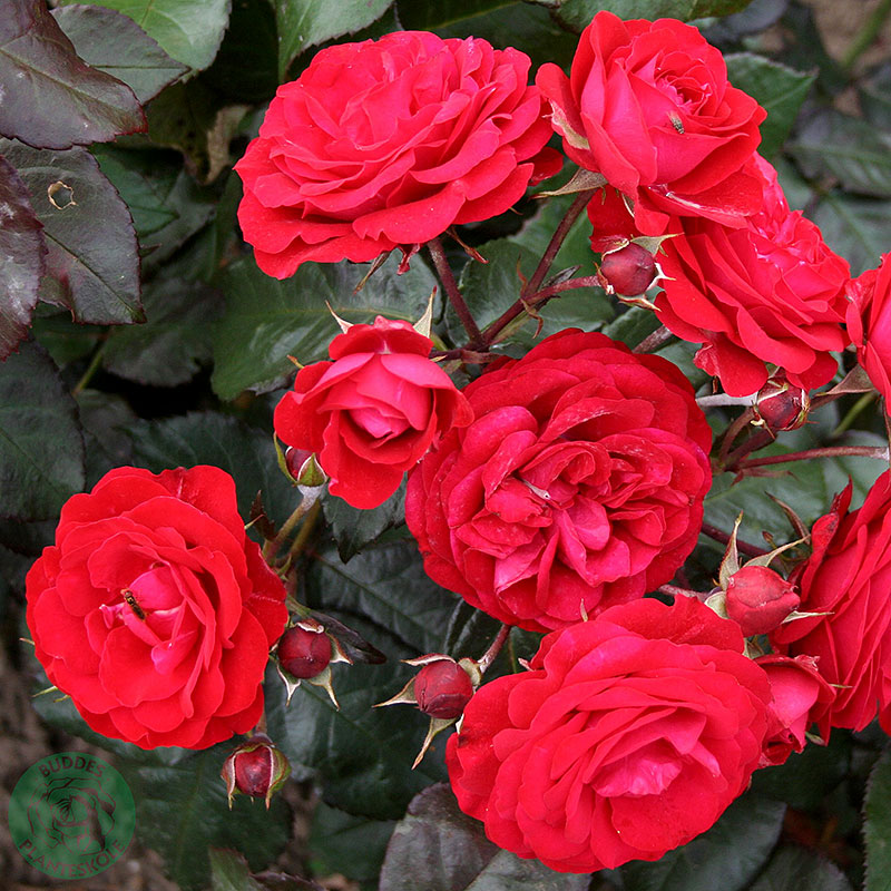 Rosa 'Europeana' blommar med stora, halvfyllda till fyllda sammetsröda blommor som sitter i stora klasar. Växtsätt är kraftig och välförgrenad. Sorten kommer att bli ca 60-80 cm hög. Bladen är mörkgröna med inslag av brons och mycket blanka. Doften är svag och kryddig. Blommar juni-oktober. Plantera gärna i näringsrik, mullrik och väldränerad jord. Beskär på våren. Kan planteras som rabattros både som solitär eller i grupp. Används även i krukor eller urnor.