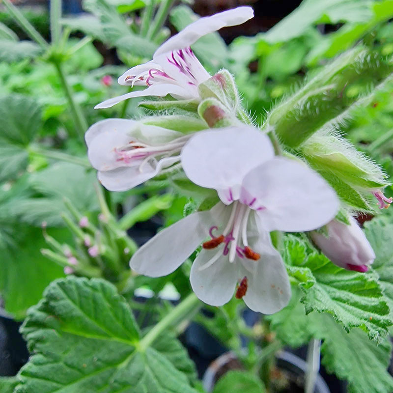 P. vitifolium är en vildart med relativt stora, lätt behårade gröna blad som avger en svag doft vid beröring.. Vita till rosa blommor.