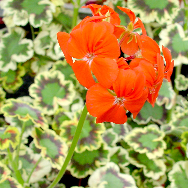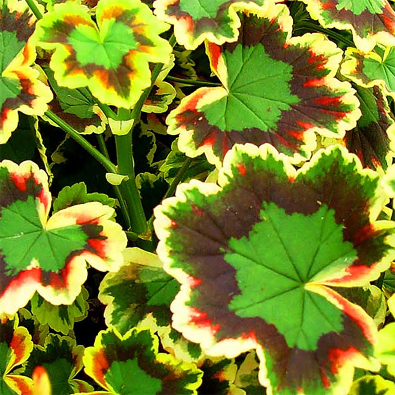Zonalpelargonen 'Mrs Pollock' från 1858 är en av de äldsta sorterna med trefärgade blad som bevarats till vår tid. Anledningen lär vara att den är väldigt tålig och lättskött trots just de flerfärgad bladen. Detta brukar annars vara en svaghet under bland annat övervintring där sorter med trefärgade blad har sämre förmåga att tåla mörk placering och kyla.