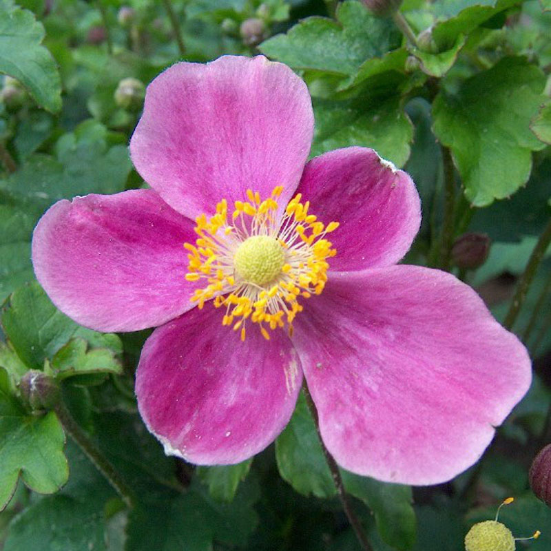 Får stora vackra mörkrosa blommor med gul mitt. En rikblommande och långlivad perenn. Trivs på en vindskyddad plats i sol till halvskugga. Planteras helst på våren då rötterna tar tid på sig att etableras.