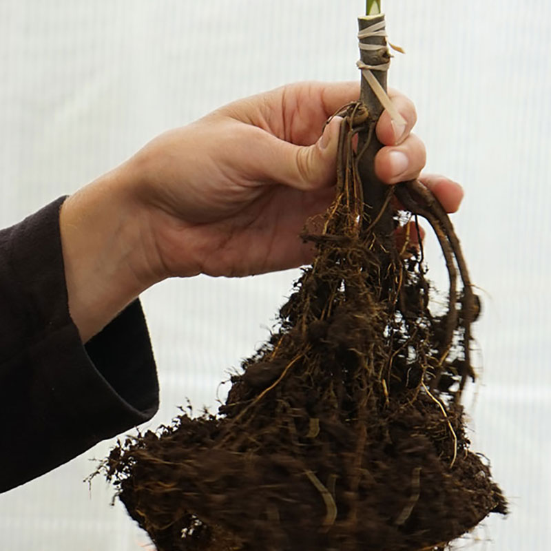 Grundstam äpple B9, för nätta träd, härdig zon 5-6, mycket svagväxande, tvåårig planta 7-9 mm