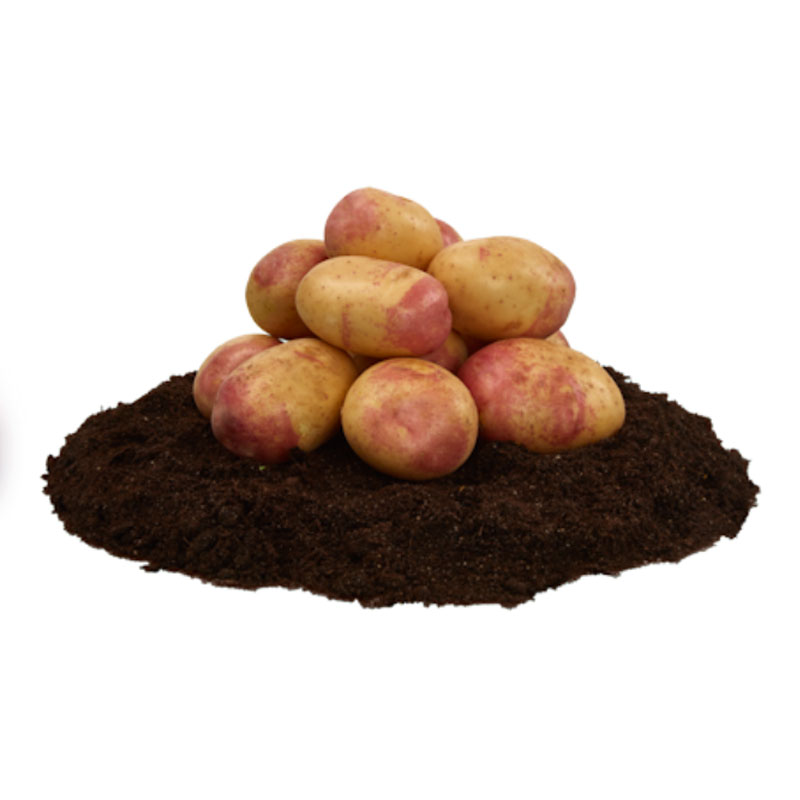Knölform: Rundoval, grunda ögon, Skalfärg: gul med röda, stora fläckar.