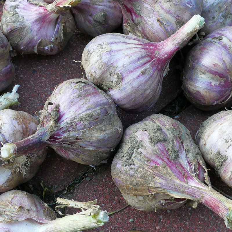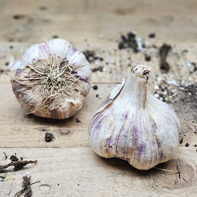 En vacker, klassisk vitlök från södra Frankrike. Vitskalig med lila inslag.
