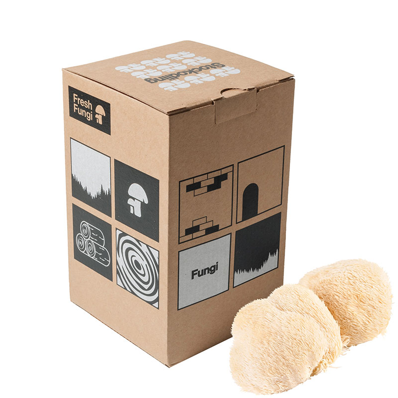 Lions Mane (Igelkottstaggsvamp). Känd för sin unika, krabb- eller hummerliknande smak och sina hälsofördelar. En spännande sort för den som vill odla något både delikat och speciellt.