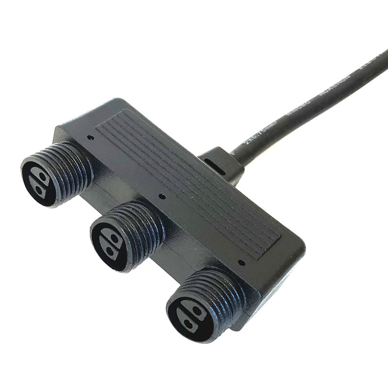 Med hjälp av denna grenkoppling får du tre lediga uttag istället för ett. Detta kan vara praktiskt om du ska koppla flera ljuskällor i närheten av varandra eller om du ska dra flera förlängningskablar i olika riktningar (eller en kombination av de två fallen).