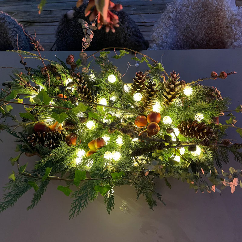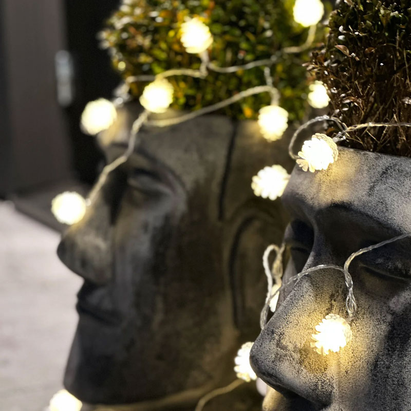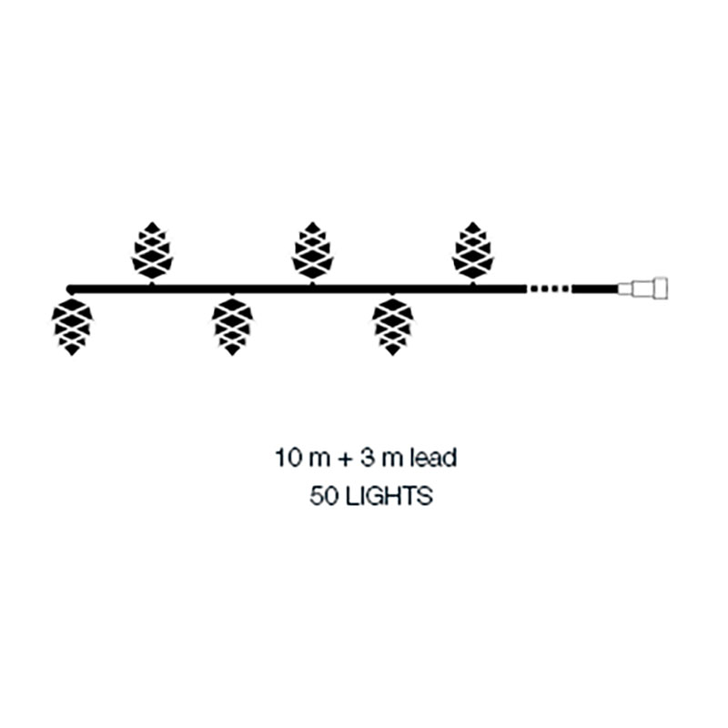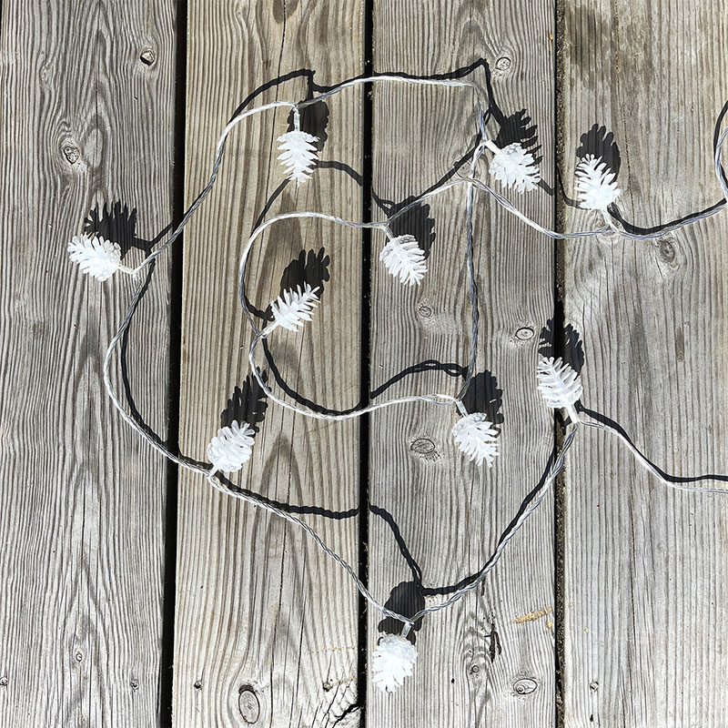 Ljusslingan Pine skapar magi i nästan alla miljöer. De 50 vita små ljusskimrande kottarna sprider ljus i såväl granen som virad runt ett räcke eller på balkongen. Eller varför inte skapa en liten installation genom att lägga hela slingan i en glasvas.