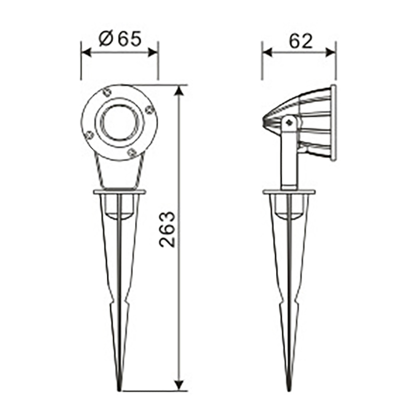 Total höjd: 263 mm, bredd 65 mm, djup 62 mm.
