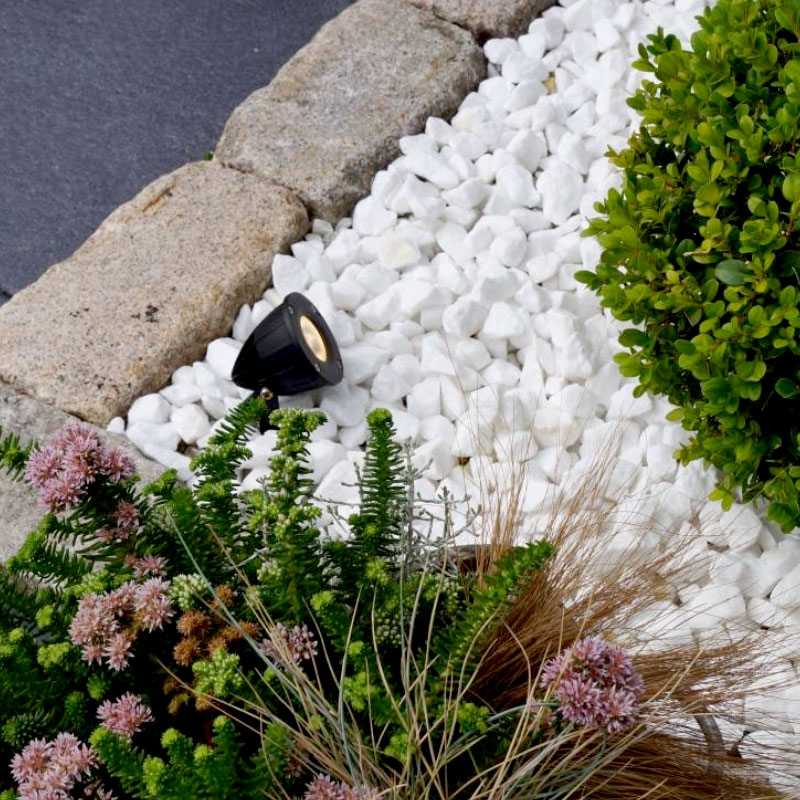 En lampa med en smal ljusspridning som passar till träd där stammen ska framhävas, alternativt där du vill att ljuset ska nå hela vägen upp i toppen på exempelvis höga tallar och björkar. Luminus är också spännande att använda för att få pelarljus mot fasad, stolpar på pergola och portaler. Om du vill belysa ett smalt och tätt prydnadsgräs eller en rosenbuske inifrån är Luminus också det naturliga valet. Den är tillverkad i pressgjuten aluminium för optimal hållbarhet och funktion. Spettet nertill gör att du enkelt fixerar armaturen i marken. Luminus är försedd med en 0.7 meter lång kabel med snabbkoppling för enkel ihopkoppling med resten av systemet.
