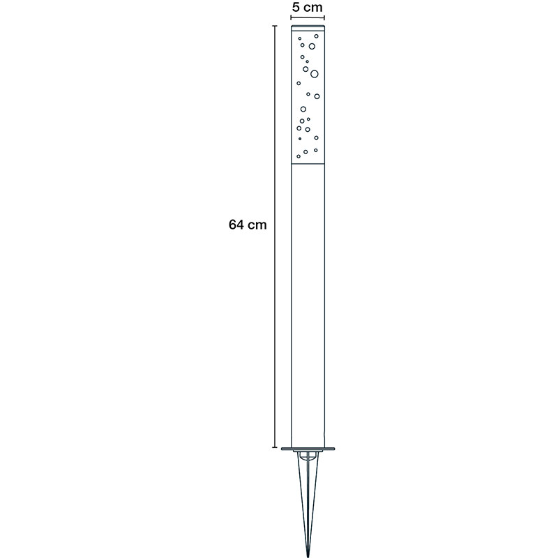 Mått: Ø 5 cm diameter, 64 cm höjd (ex. spett)