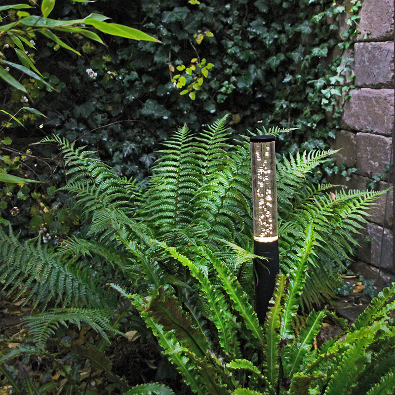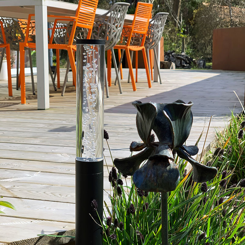 De små bubblorna i akrylglaset reflekterar det mjuka ljuset och skapar ett behagligt sken runt sin omgivning. Fint är att sätta flera i en grupp i en perennrabatt eller vid en damm för att skapa en