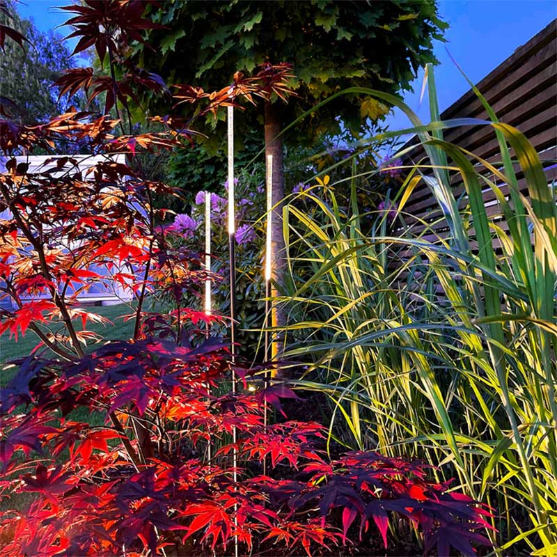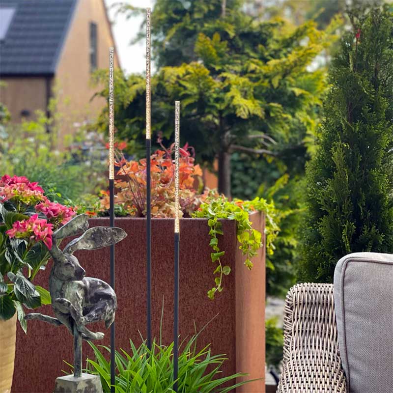 Tre smala designljusstrån passar lika fint i skirt prydnadsgräs som bland sommarblommande rabatter. Stråna är dessutom perfekta att placera i krukor vid exempelvis altanens loungegrupp. Varför inte som en egen installation där det känns som det fattas något? De passar också för mindre ytor som på balkongen och vid entrén. De olika höjderna på lamporna gör att du enkelt kan skapa en WOW-känsla i trädgården och utemiljön.