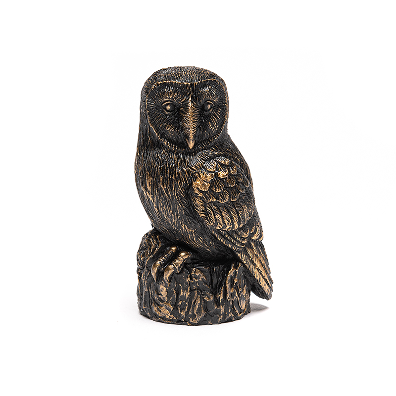 Trädgårdsknopp, uggla, 8.5 cm antik brons krossad sten och harts UV-beständig