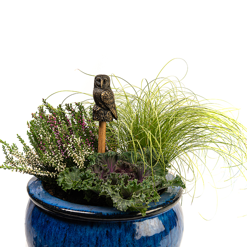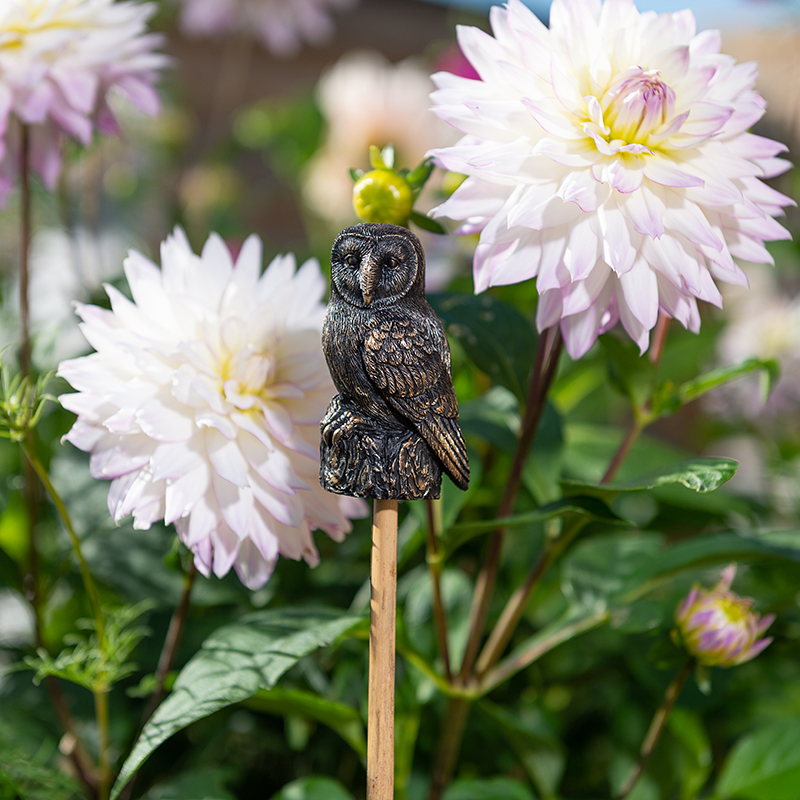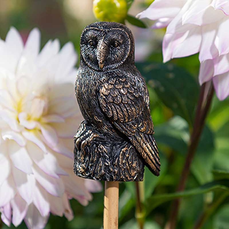 Unik och söt trädgårdsdekoration för pinne, designad som en uggla. Fin i rabatt och kruka.