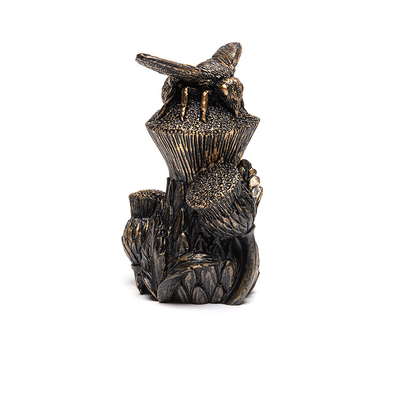 Trädgårdsknopp Bi på tistel, 7.5 cm antik brons krossad sten och harts UV-beständig