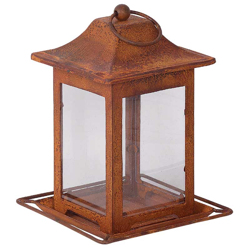 Fågelmatare frö Rusty 25 cm, plåt och plexi H25 cm ringupphängning sittplatser runtom