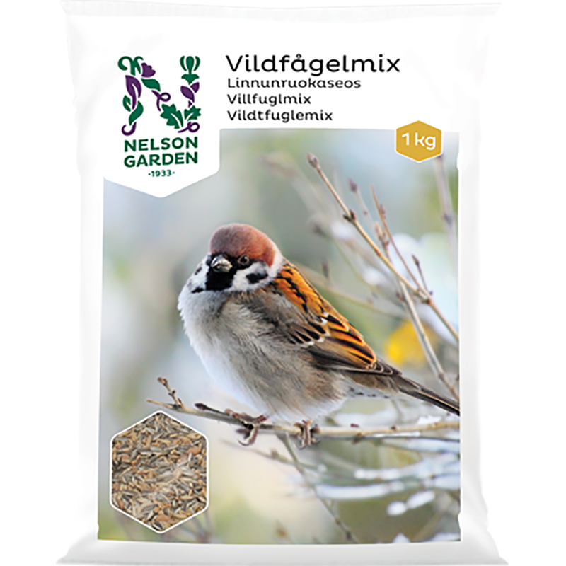 Vildfågelmix kvalitet 1kg, energirik mix solros hirs spannmål attraktiv för småfåglar