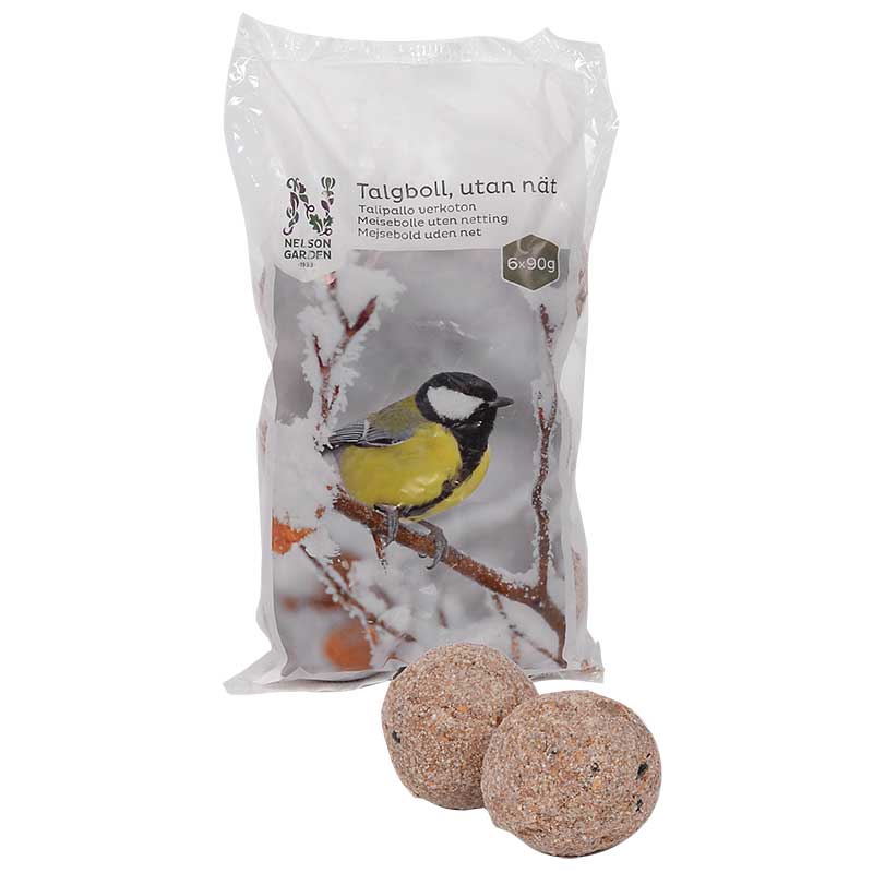 Innehåller: 6-pack i påse.Talgboll 90g 6st, energirika talgbollar utan nät frö talg spannmål 6-pack