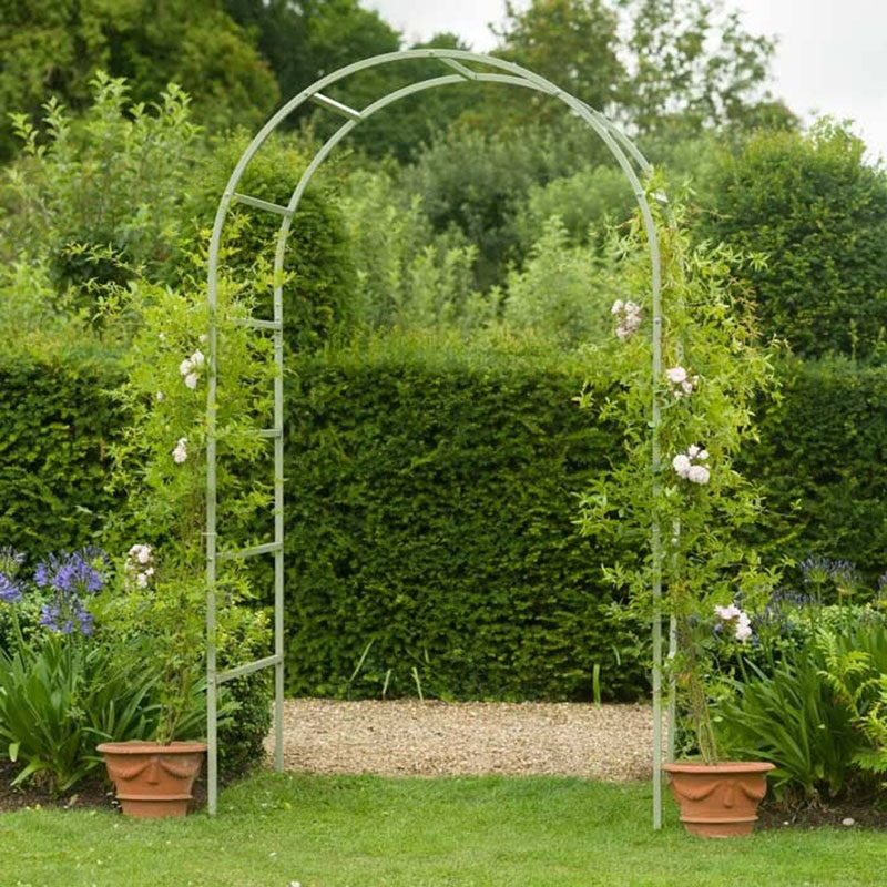 Den romerska trädgårdsbågen i ljusgrönt är tillverkad i exceptionellt höga kvalitet med hjälp av galvaniserad extra stark 1,5 mm tjock x 25 mm kvadratstål, som sedan pulverlackeras i en vacker grön färg.