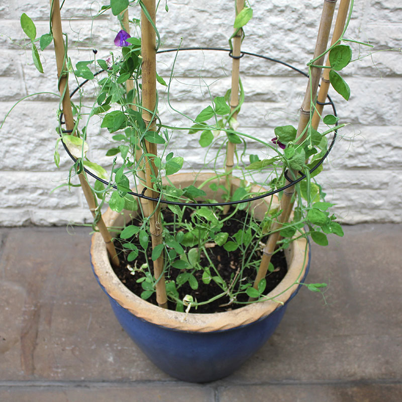 Växtstödet kan placeras i en stor kruka eller direkt i marken.