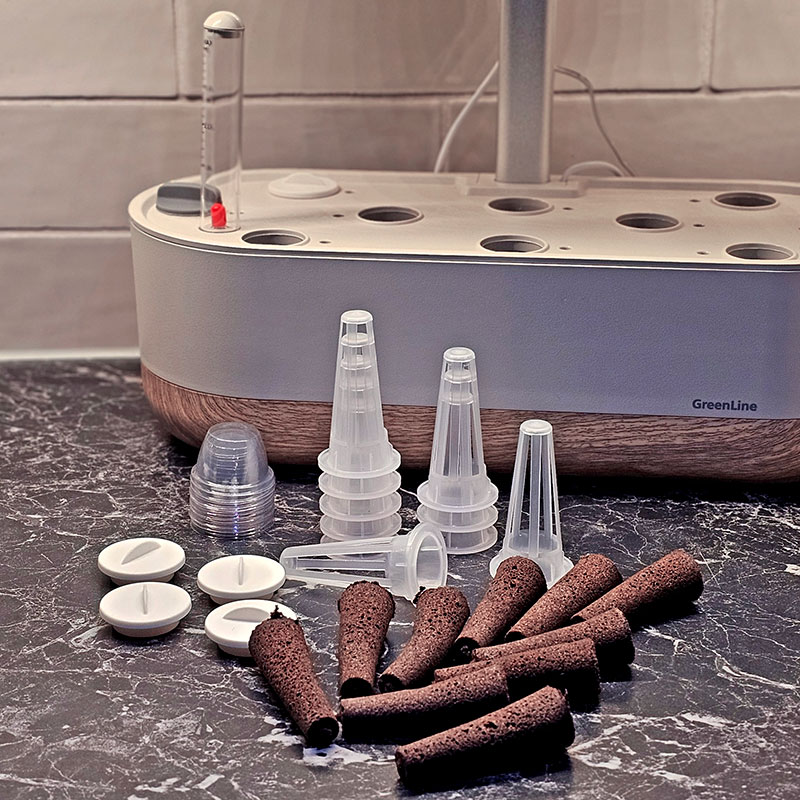 Detta kompletta odlingssystem levereras med 10 odlingspluggar och 10 odlingskorgar.