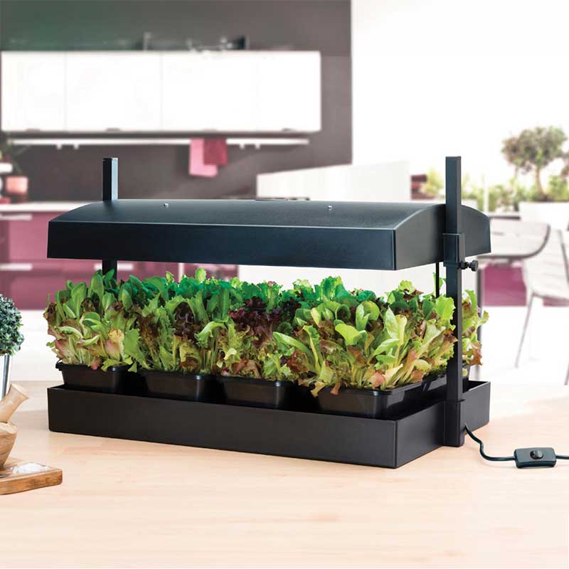 Med Micro Grow Light Garden LED kan du odla och dra upp växter inomhus året om, även på liten yta. Denna större version av vår populära odlingsstation ger gott om odlingsmöjligheter och passar perfekt i hemmet, på kontoret, i restauranger eller offentliga miljöer.