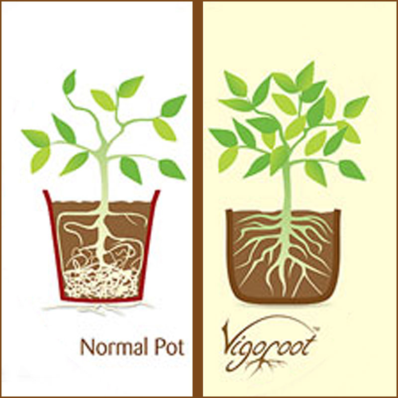 Vigoroot fungerar genom en sk. 'air-pruning'-process (luft-beskärning). Det innebär att när rottrådarna når insidan av krukan vidtar denna process som man kan likna med att de beskärs. Rötterna kan då fortsätta utvecklas utan att bildas rotsnurr krukan.