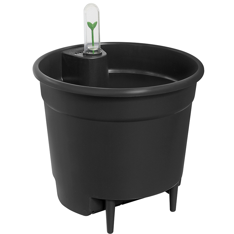 Självvattnande krukor har en insats med ett vattenmagasin som är skilt från krukjorden. De flesta system fungerar genom att kapillärkraften ser till att lagom mängd vätska sugs upp till odlingsjorden. På så vis kan inte rötterna drabbas av för blöt jord och därmed syrebrist. Andra system trycker ut vattnet i perioder som styrs av en fuktindikator, så att jorden torkar upp mellan vattningarna. I magasinet tillför du också växtnäring. Modellerna har en indikator som visar när det är dags att fylla på magasinet. Välj storlek efter behov.